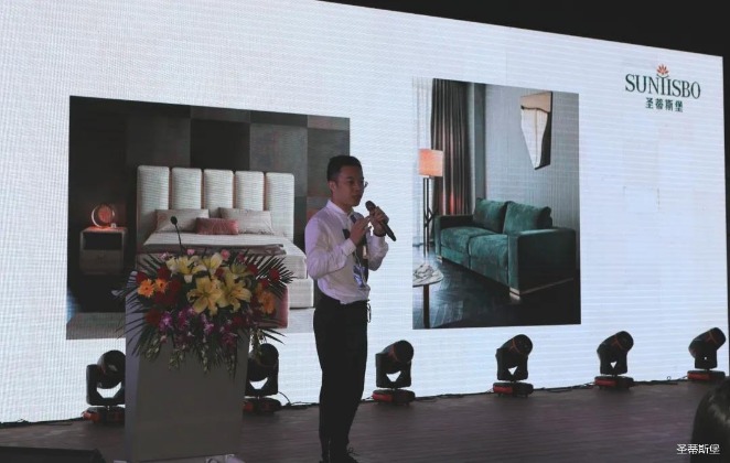 华灯璀璨的开场仪式,点燃了现场如火如荼的气氛。333体育集团集团营销总经理陈玉伟先生对晚会进行了主题发言,他对2020年的营销工作进行了总结,并着重从营销工作部署、重点项目开展、产品整合、拎包帮扶、渠道运营和移动+定制整装优势等方面对2021年的营销工作做了全面的统筹规划。同时,他还讲解了“美国梦凯莎床垫”新品的产品工艺、市场优势、产品定位,使经销商对我们的新产品拥有更深入的认识和了解。
