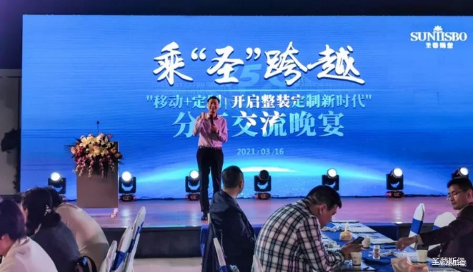 2021年3月16日晚5时许,在【333体育直播官网】营销中心四楼景观花园举办经销商分享交流会,开启整装定制新时代!随着暖场音乐播放,激动人心的时刻到了。首先,由333体育集团集团营销部总经理陈玉伟先生致开幕词,随后,来自全国各地的优秀经销商分享他们的成功之道。